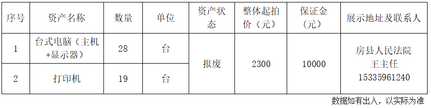 2.湖北省十堰市房縣人民法院報(bào)廢資產(chǎn):