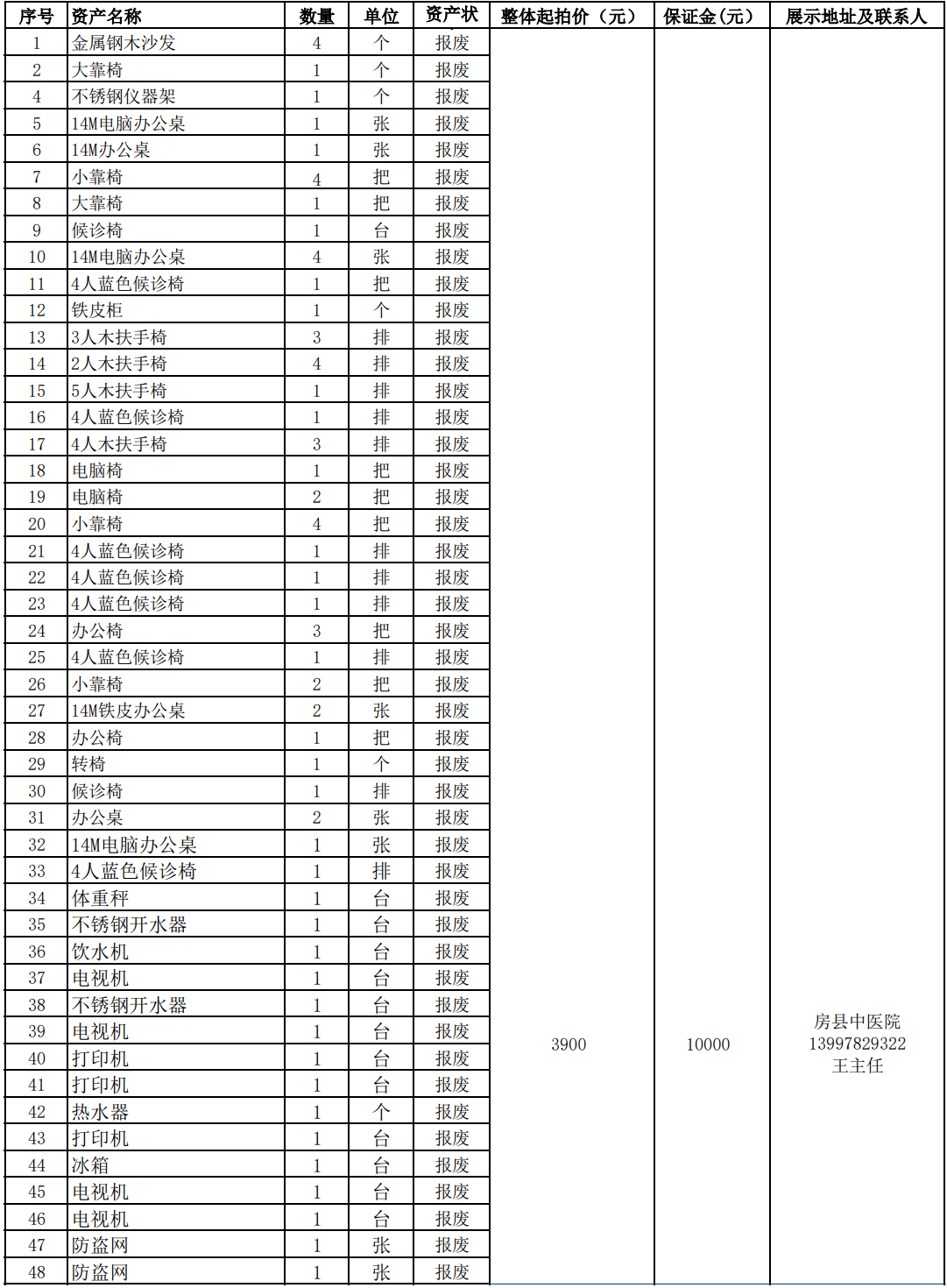 ]]>一、拍賣標(biāo)的:湖北省十堰市房縣中醫(yī)院報(bào)廢資產(chǎn):